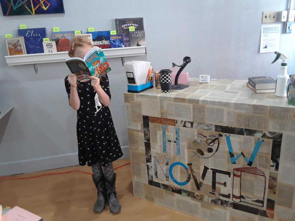 My assistant approves of the stock. We opened the door for a few hours today, just for fun, and will again tomorrow around lunch time. Feel free to stop by and buy a book so I can practice using my Square terminal!
