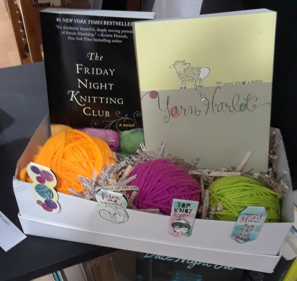 (Meaning 2 knitting novels, 3 balls of yarn, and 4 knitting bookmarks – a $23.94 value for only $15!)