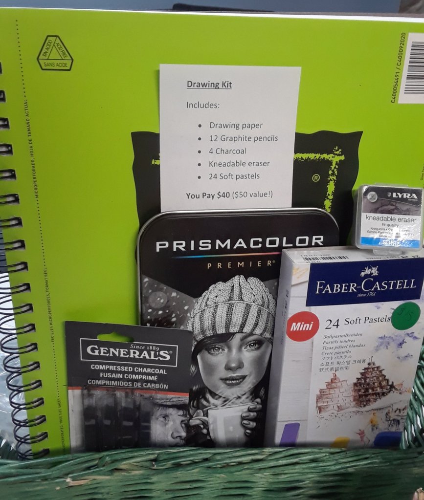 (Combine charcoal with paper, pastels, pencils, and an eraser -a $50 value- for only $40!)