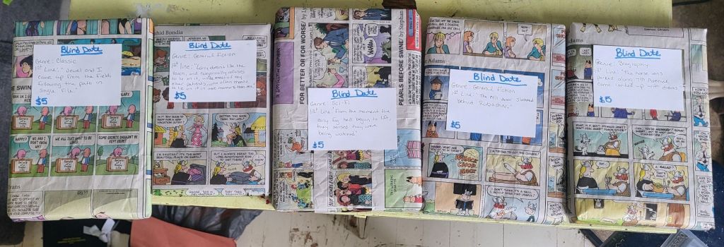 … not for the apocalypse, but for spring book sales! Blind Date with a Book, wrapped in old comics, back by popular demand!